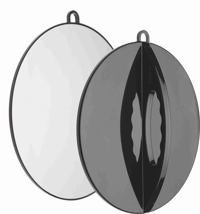 Der superflache Handspiegel mit Öse zum Aufhängen. Durchmesser: 28 cm